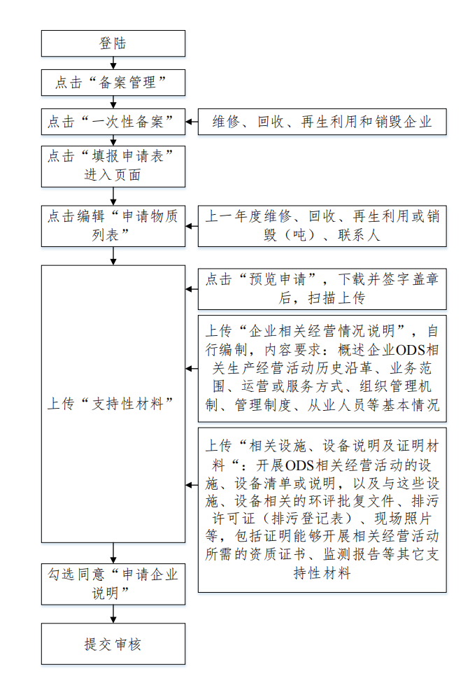 一次性备案(备案一次长期有效):适用于ODS维修、回收、再生利用、销毁企业,完成备案后无需重复办理。